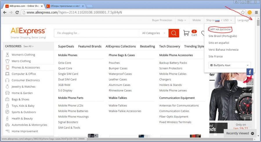 Как перевести цены из долларов в как на Алиекспресс Выбрать русский язык и перед вами