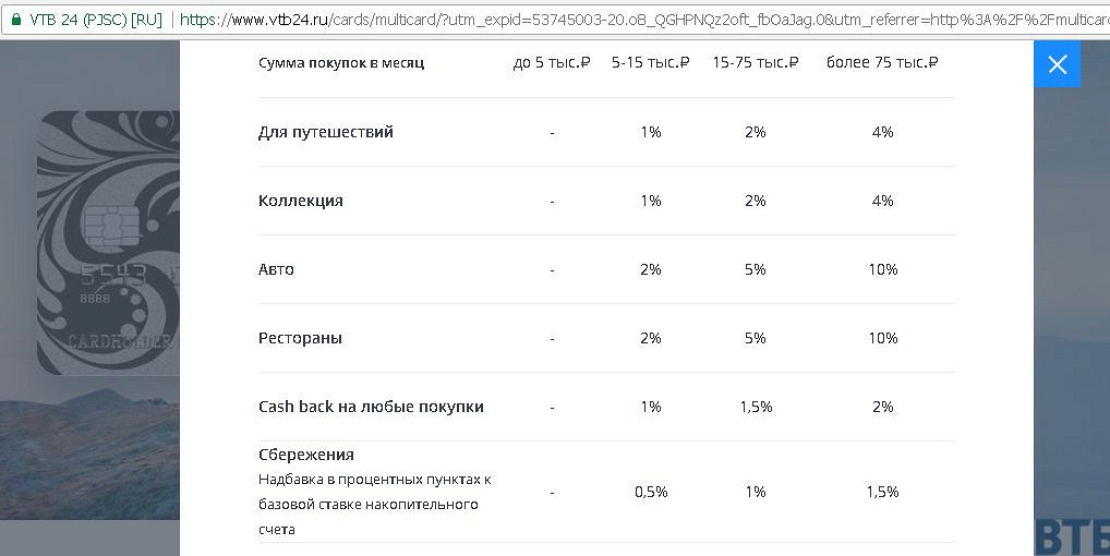 Как рассчитывается кэшбэк по Мультикарте ВТБ 24